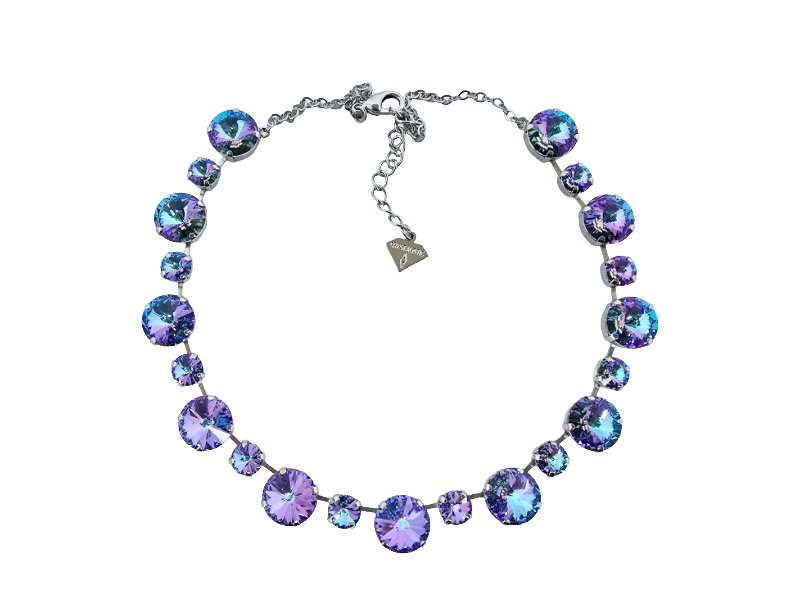 Our Angela Vitrail Crystal Necklace is timeless and eye-catching, adding elegance and sparkle to any outfit. It showcases a shimmering row of 19 Swarovski® crystals in alternating 1.4cm and 0.8cm sizes, made to shine. Each crystal reflects the light beautifully, creating a radiant effect for both everyday wear and special occasions. You can choose a high-quality 18ct gold or silver-coated setting to suit your personal style. An adjustable extender chain offers the perfect fit, and we gladly customise lengths upon request.