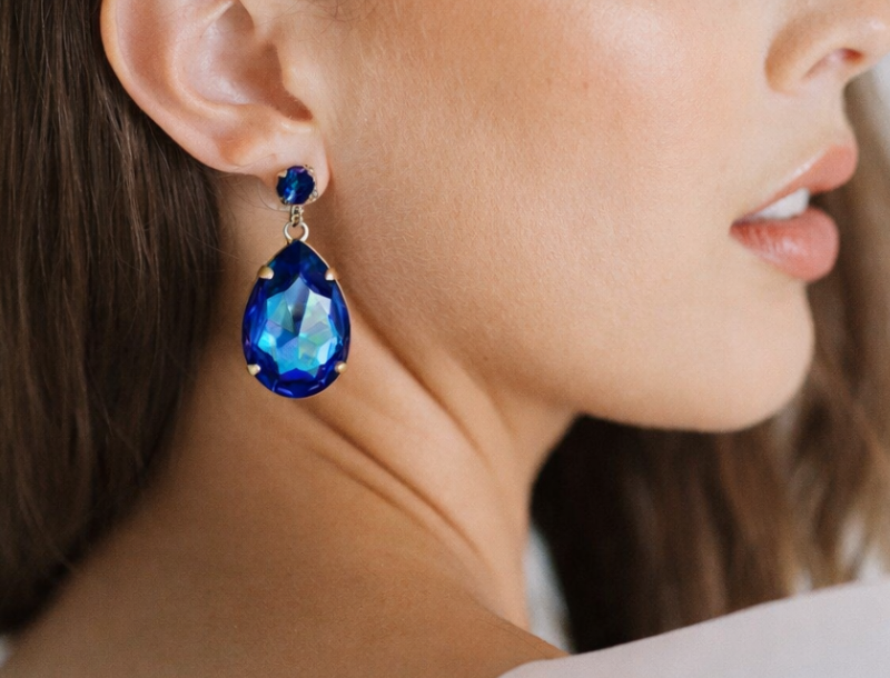 Our Angelina Royal Blue Delite Stud Pear Drop Crystal Earrings are simple yet striking. We handcraft each pair in Australia using genuine Swarovski® crystals. Inspired by the iconic earrings Angelina wore to the Oscars, this is our take on that red-carpet look. Each earring features a bold 3cm x 2cm pear-shaped stone on an 8mm stud base. The crystals catch the light beautifully, adding a soft sparkle to any outfit.