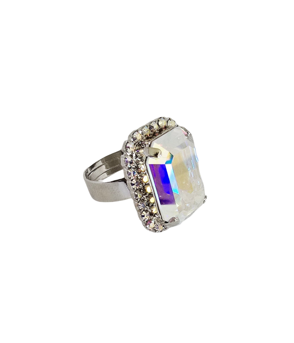 EMMA HALO ADJUSTABLE EMERALD CUT RING – AURORA BOREALIS