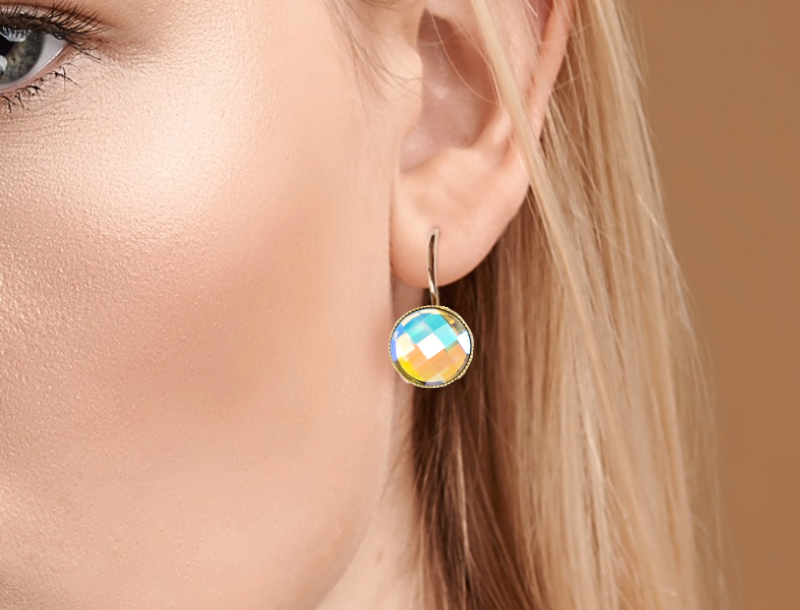 Glacier is a unique special edition Swarovski crystal. With a colour similar to Aurora Borealis it reflects a higher level of blues and pinks and changes colour at each direction. Glacier is set in a high quality 18ct plate lever close earring but I also create as a short or long drop in sterling or gold plated sterling earwires by request.