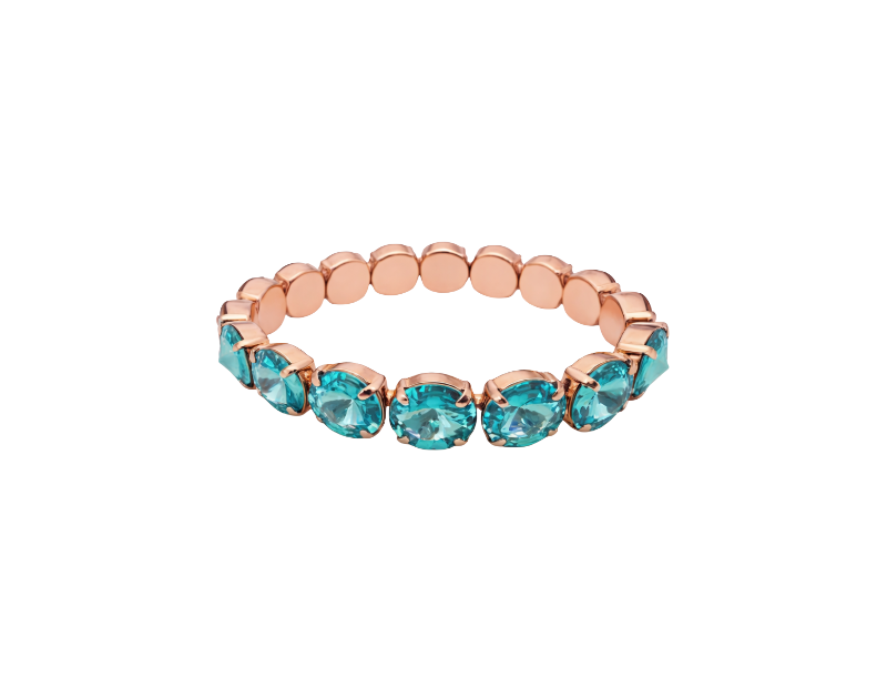 Our Glide Light Turquoise Crystal Bracelet is an elegant jewellery piece, designed to turn heads with its captivating sparkle. It features gorgeous 8mm/12mm Swarovski® stones, each shimmering with brilliance and set in a high-quality silver, rose, or gold-coated base. A protective sealant lacquer is applied to the back of the bracelet, ensuring lasting quality and durability. With its elasticised fit, this bracelet is easy to wear and comfortable for all-day style. It’s a striking piece that brings both everyday glam and evening sophistication.
