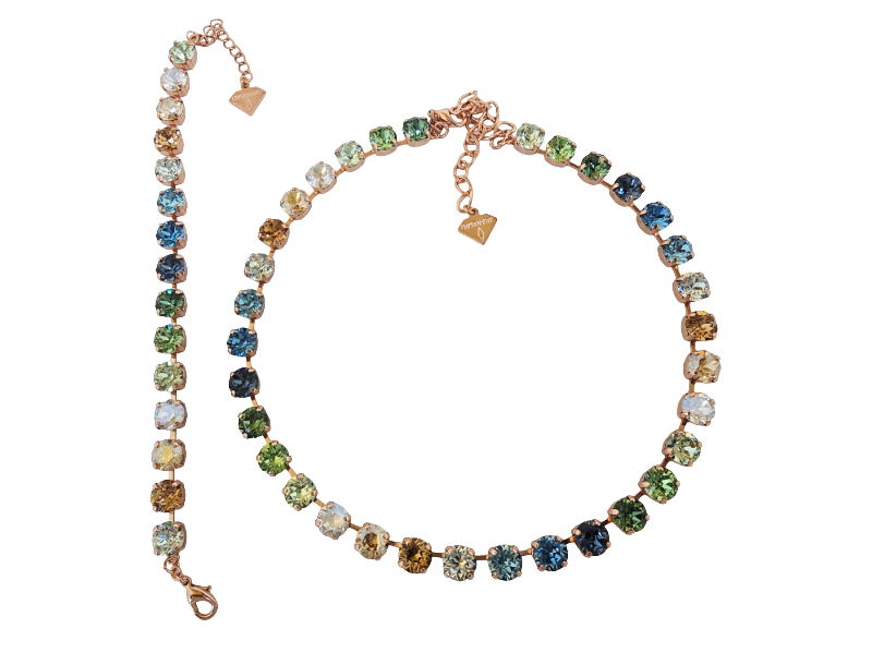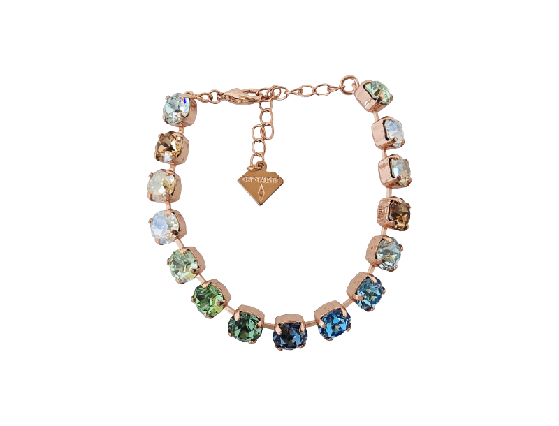 Our Golden Elegance crystal combination blends crystal clear sparkle with gold, blues, and greens for a radiant, refined look. Evoking sunlight on water and the calm of shifting tides, this palette brings timeless elegance and natural beauty to any design.