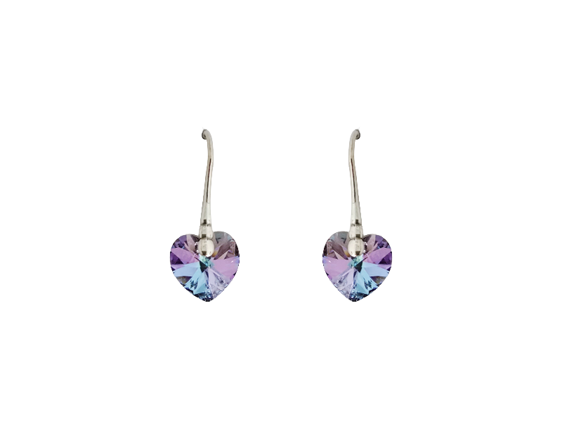 Our Hannah Vitrail Crystal Heart Earrings may be small, but they still make a serious statement. Designed for those who love just a touch of sparkle, they feel effortless yet eye catching. These dainty heart earrings feature vivid heliotrope crystals that flash rich blues, pinks, and bright purple tones as they catch the light. As a result, they add the perfect everyday hint of colour and shine.