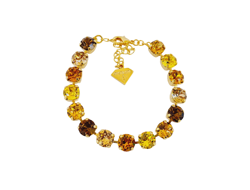 Our Topaz Crown Crystal Tennis Bracelet is an elegant jewellery piece, designed to turn heads with its captivating colours. It features stunning Swarovski crystals that add a vibrant pop to any outfit, varying in stone sizes. Handcrafted in Australia, and set in silver, gold, or rose gold, this bracelet suits every style and occasion. It’s a striking piece that also brings a touch of everyday glam.